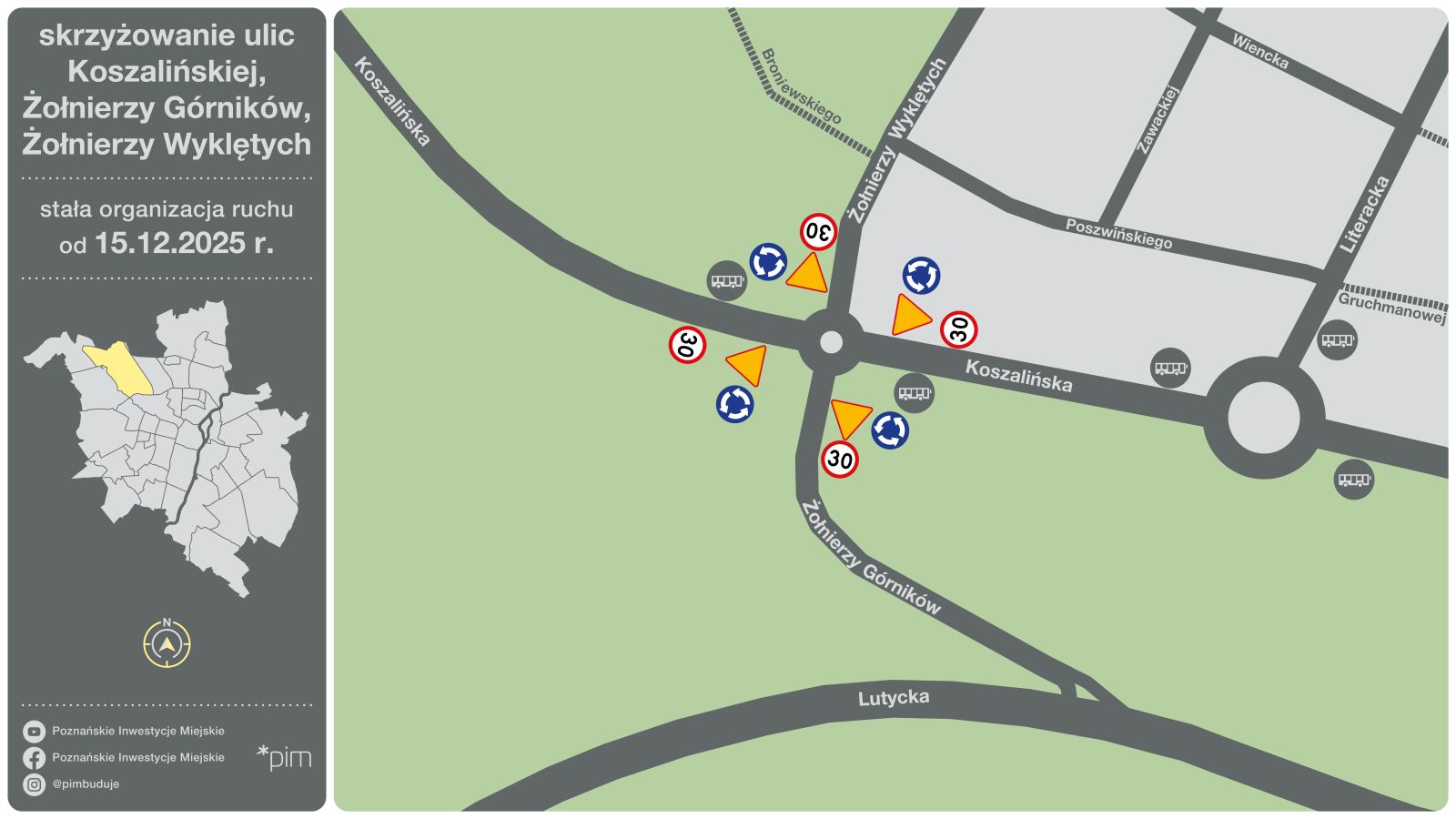 - To inwestycja ważna dla mieszkańców Strzeszyna. Rondo w miejscu tradycyjnego skrzyżowania upłynni ruch i podniesie poziom bezpieczeństwa. Z kolei nawierzchnia ul. Żołnierzy Górników była już w złym stanie, dzięki wymianie na nową poprawi się komfort przejazdu. Ze względu na wprowadzenie stałej organizacja ruchu prosimy o stosowanie się do nowego oznakowania – mówi Tomasz Płóciniczak, wiceprezes spółki Poznańskie Inwestycje Miejskie.