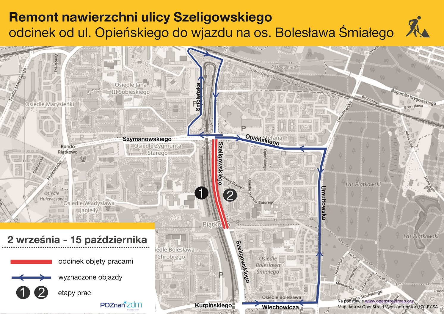 Podczas remontu obowiązywać będzie tymczasowa organizacja ruchu. Oznacza to utrudnienia w rejonie osiedla Stefana Batorego i konieczność korzystania z alternatywnych tras. Od 2 września, gdy wymieniane będą krawężniki, ruch na ul. Szeligowskiego będzie odbywał się w obie strony, ale przy zawężonej jezdni. Na czas frezowania nawierzchni i układania nowej przejazd zostanie całkowicie zamknięty. W pierwszym etapie drogowcy zajmą się zachodnią częścią ulicy, czyli tą w stronę centrum miasta. Objazd dla kierowców jadących z kierunku północnego w stronę centrum wyznaczono ulicami: Opieńskiego, Umultowską i Wiechowicza. Dla podróżujących z ulicy Opieńskiego objazd prowadzić będzie ulicami: Szymanowskiego, Smoleńską, Stróżyńskiego i Szeligowskiego. Dojazd do posesji i osiedlowych parkingów zostanie utrzymany, ale wjazdy mogą być czasowo ograniczane w zależności od postępu prac.