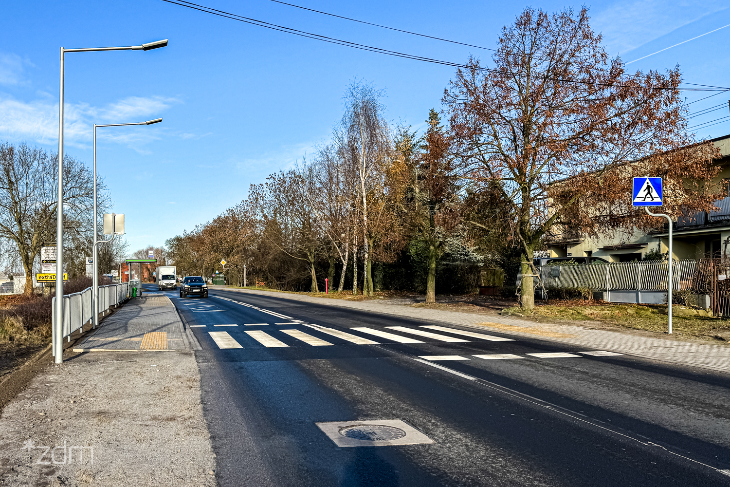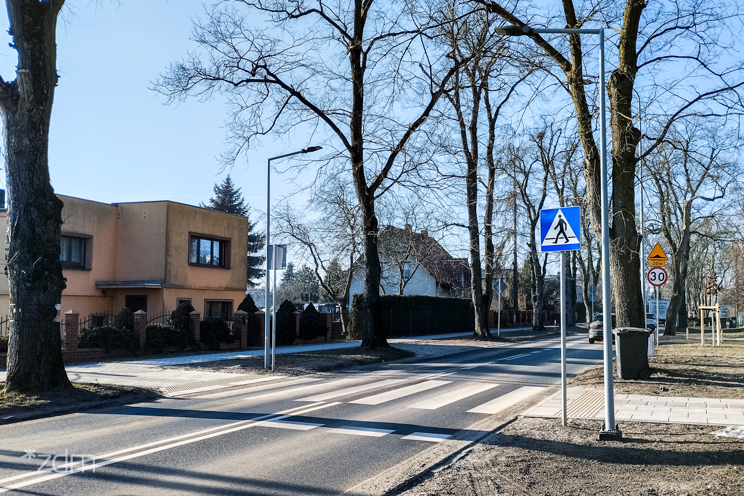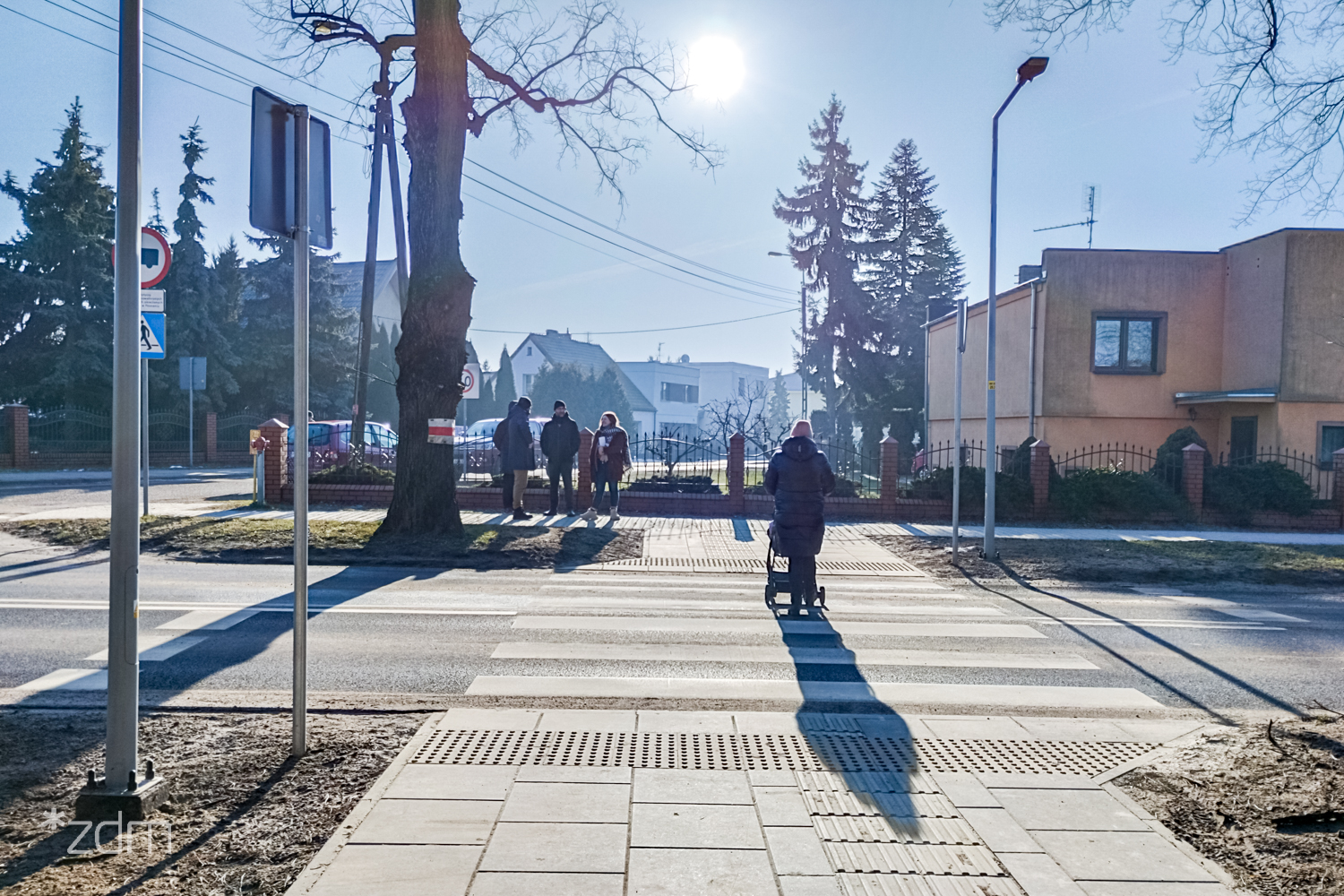Oba przejścia dla pieszych zostały doświetlone, co znacząco poprawia widoczność i bezpieczeństwo po zmroku. Zamontowano również fakturowe oznaczenia nawierzchni, które ułatwiają poruszanie się osobom niewidomym i niedowidzącym.