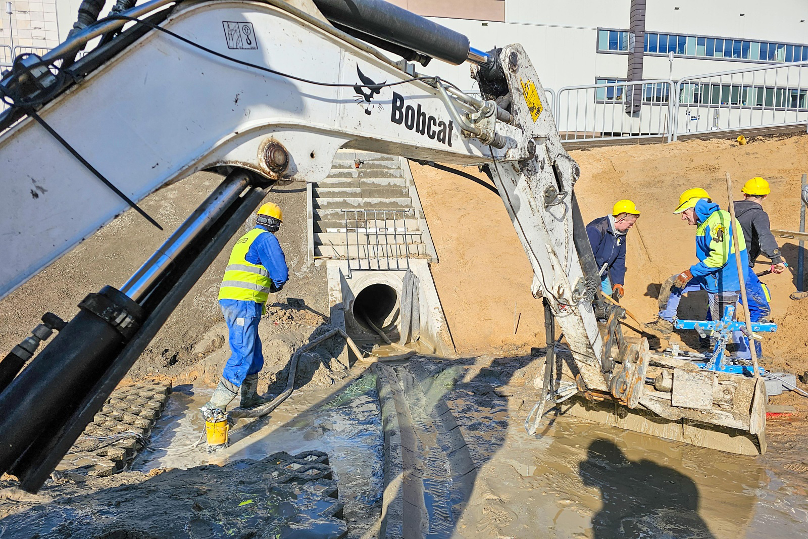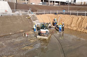 Zaawansowana jest również budowa zjazdu, który ma umożliwić konserwację zbiornika. Na placu budowy stanęły słupy z oprawami oświetleniowymi. Gdy tylko warunki atmosferyczne na to pozwolą, wznowione zostaną prace w zakresie zieleni. Do tej pory przeprowadzono część nasadzeń zieleni niskiej.