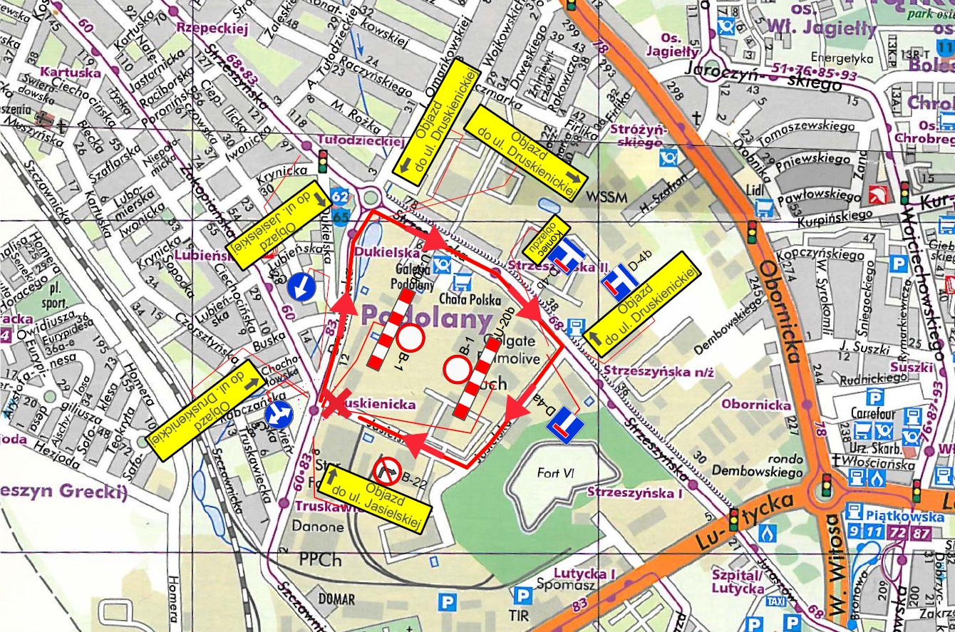 Prace przygotowawcze rozpoczną się już w nocy z 29 na 30 sierpnia. Od tego dnia obowiązywać będą tymczasowe zmiany w organizacji ruchu. Zamknięty dla ruchu będzie wjazd i wyjazd z ul. Jasielskiej na skrzyżowaniu z ul. Druskienicką. Objazd do ul. Jasielskiej został wyznaczony ul. Druskienicką oraz ul. Strzeszyńską.