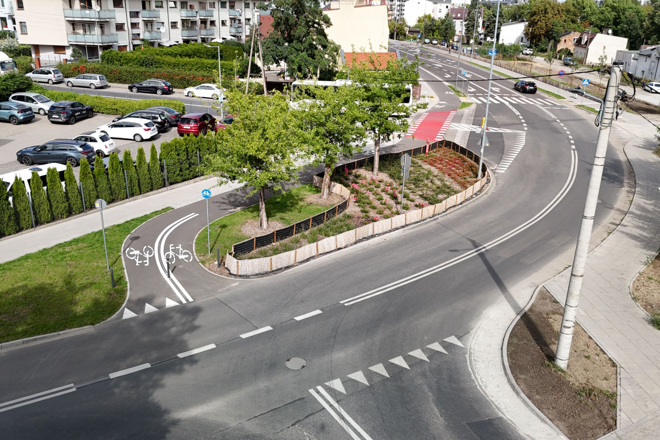 Pojawiły się również nowe rośliny – oprócz zieleni niskiej po wschodniej stronie ulicy, na odcinku między ul. Bosą a Daleką posadzono nowe drzewa. Więcej roślin pojawiło się także na terenie u zbiegu ul. Dalekiej i Miedzianej, który został odbrukowany.