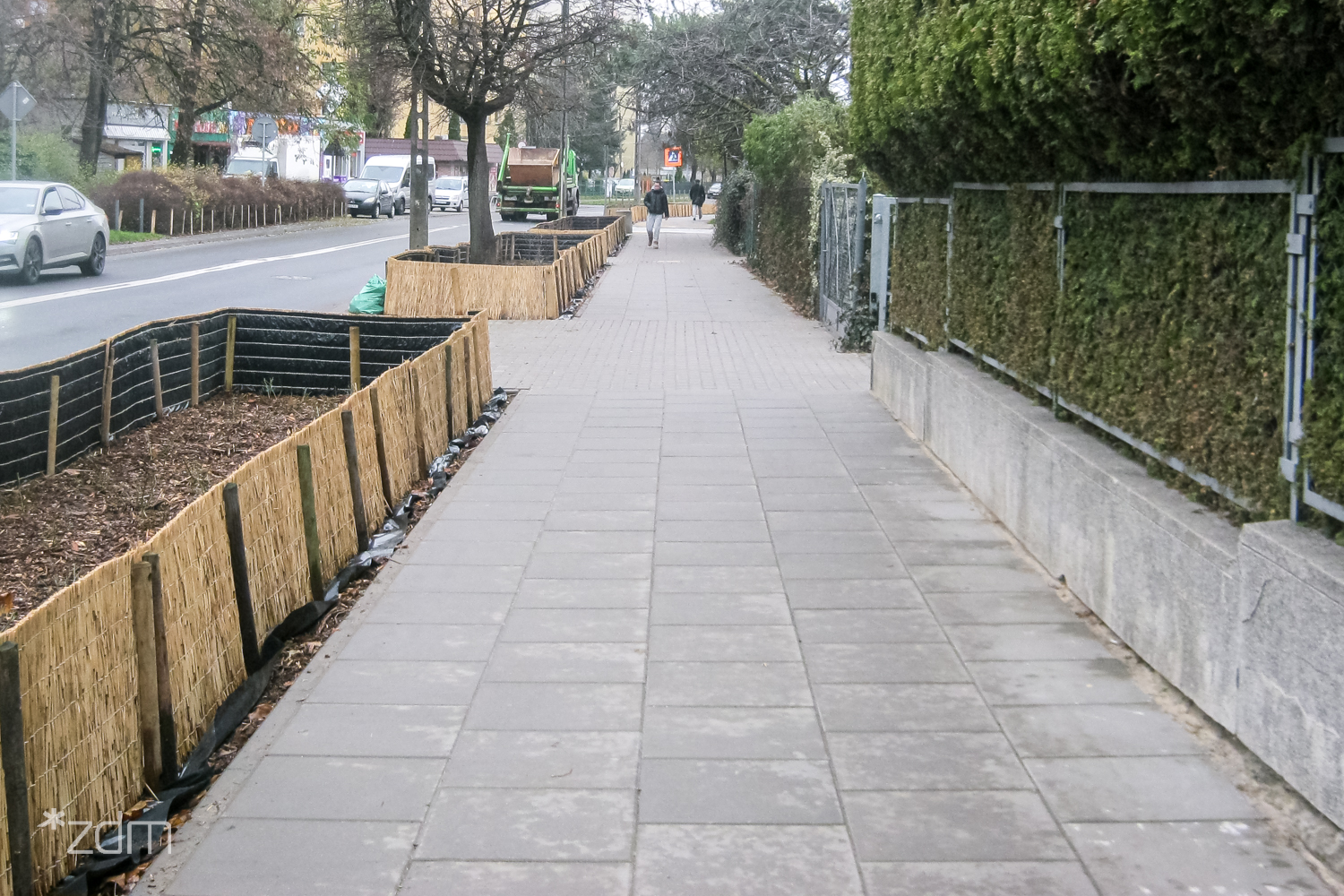 Po zakończeniu prac brukarskich została również posadzona zieleń - około 300 krzewów. Zamontowano także maty słomiano-foliowe w celu ochrony młodych roślin przed zniszczeniem oraz zasolonym błotem pośniegowym.