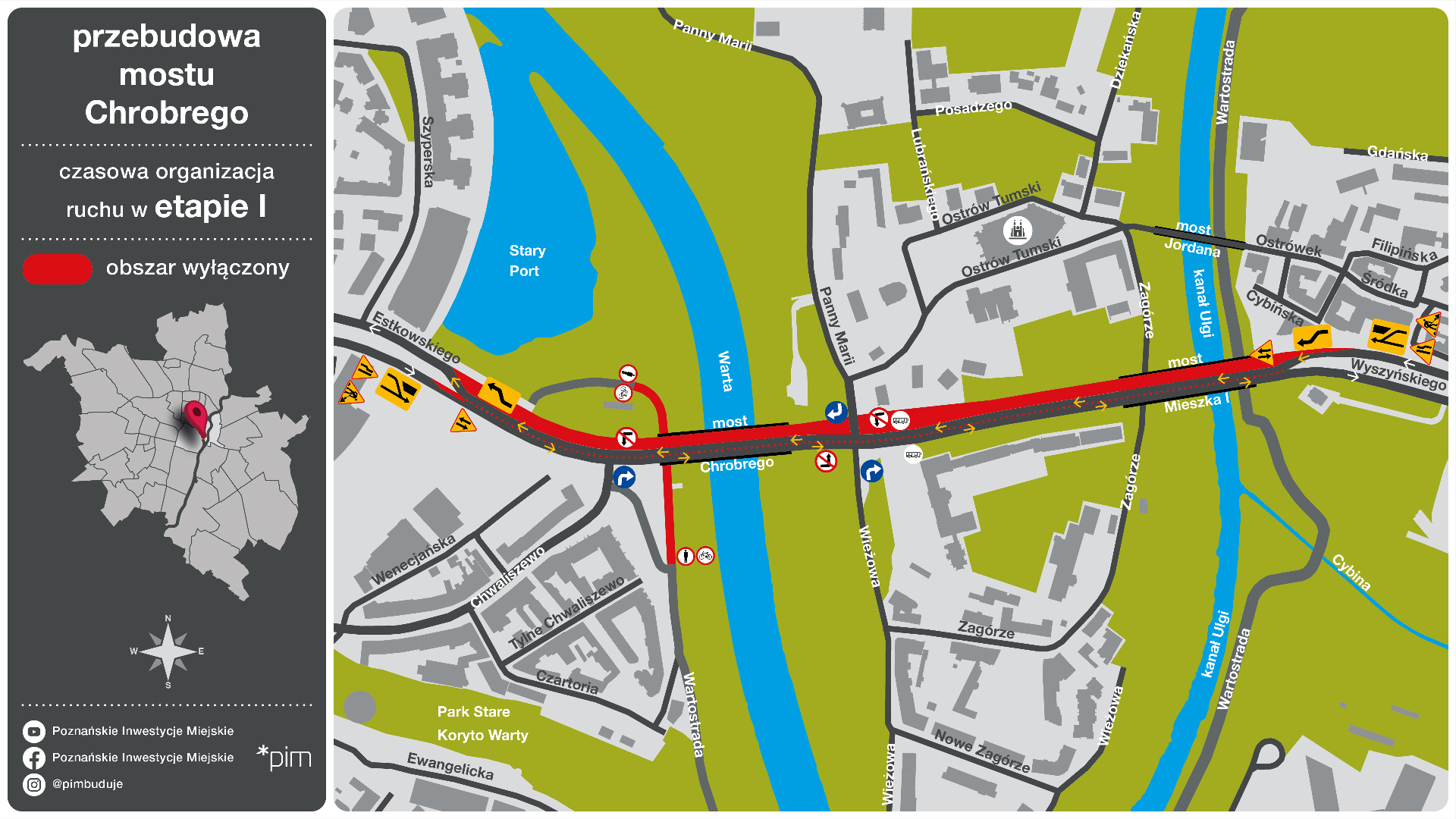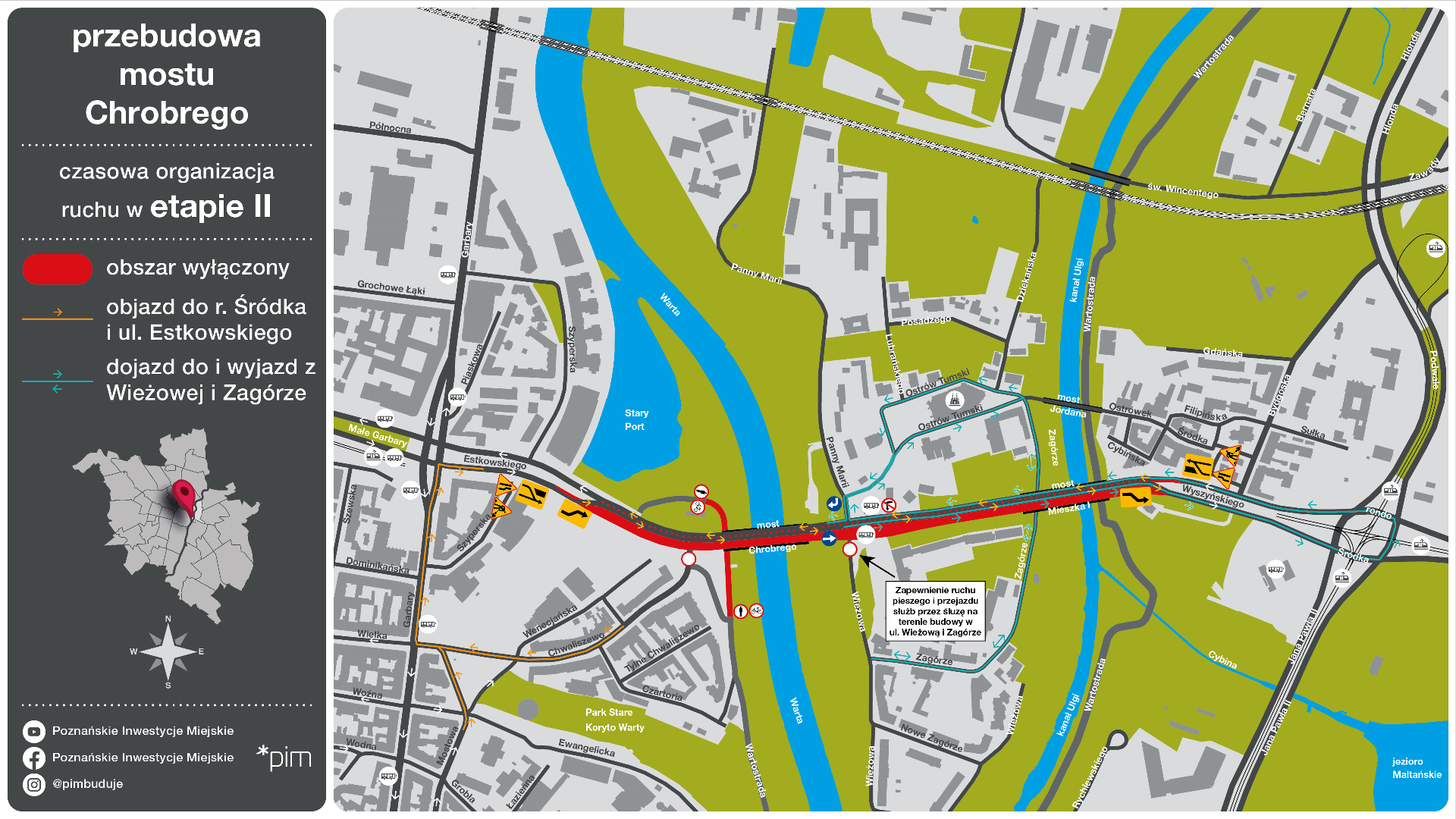 - Przekazanie placu budowy planujemy na wrzesień, wtedy to wykonawca będzie mógł przystąpić do prac przygotowawczych, w ramach których zajmie się m.in. badaniami archeologicznymi, budową przewiązek umożliwiających przejazd przez torowisko tramwajowe, wprowadzeniem odpowiedniego oznakowania i zmianami w zakresie sterowania sygnalizacją świetlną na najbliższych skrzyżowaniach. Konieczne będzie też przeniesienie infrastruktury podziemnej z mostu i wykonanie przewiertów pod rzeką, a także demontaż sieci trakcyjnej. Po tych wszystkich pracach wyłączona z ruchu zostanie północna nitka mostu, a przejazd w obu kierunkach odbywał się będzie południową - zapowiada Tomasz Płóciniczak, wiceprezes spółki Poznańskie Inwestycje Miejskie.
